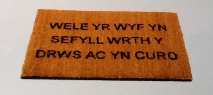Beth yw neges mat llawr Iwan Dafis?